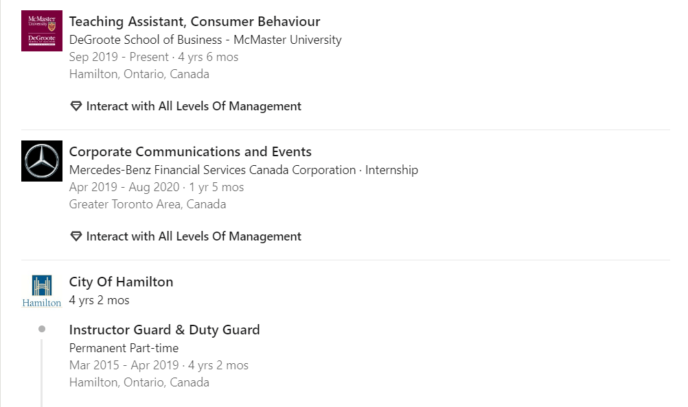 Before Scotiabank, she was, a lifeguard in Hamilton, worked for Mercedes-Benz, and did a TA role at McMaster!