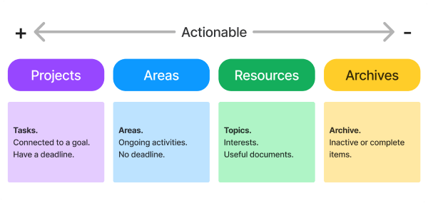 PARA solves all this by separating whatever you track online into 4 buckets: