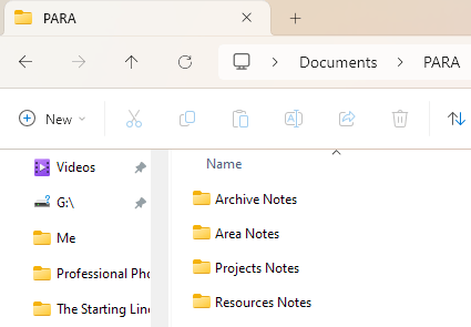 But you donβt have to use Notion. Making a PARA system can be as simple as creating folders in your documents like this: