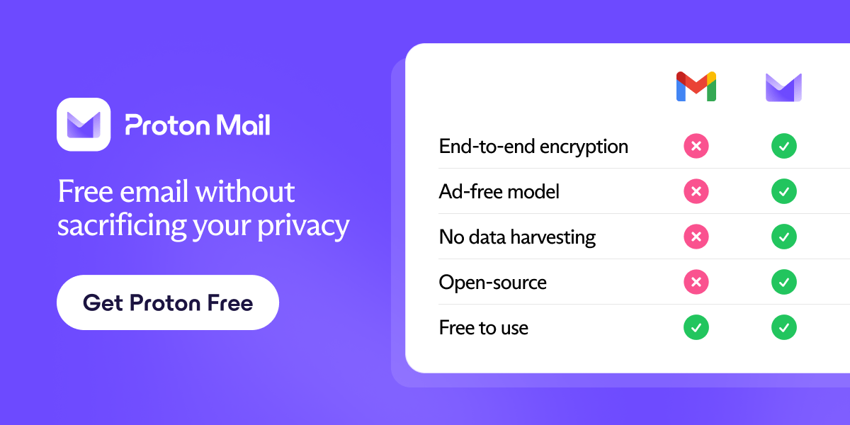 Gmail tracks you. Proton doesn’t. Get private email that puts your data — and your privacy — first.