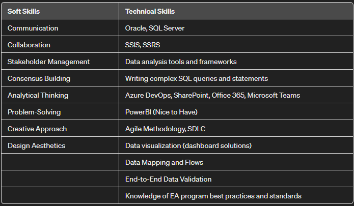 βI want you to analyze a job description and make a table of all active keywords from it. The table will have 2 columns. The left column will list soft skills, and the right column will list technical skills.β