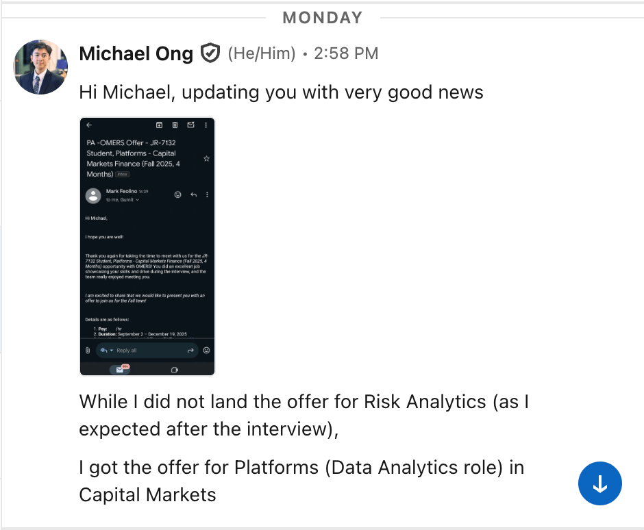 Next Tuesday, Iβll release a recorded interview with Michael Ong to hear more about his job searching process - stay tuned!